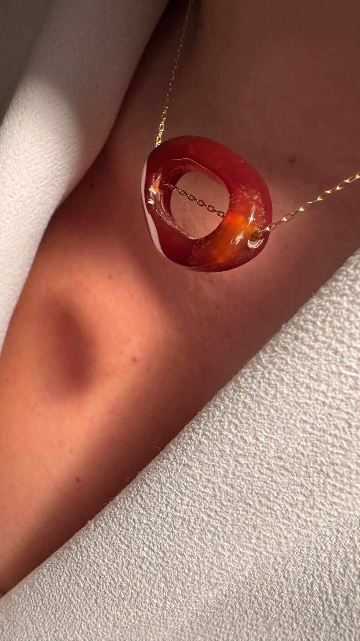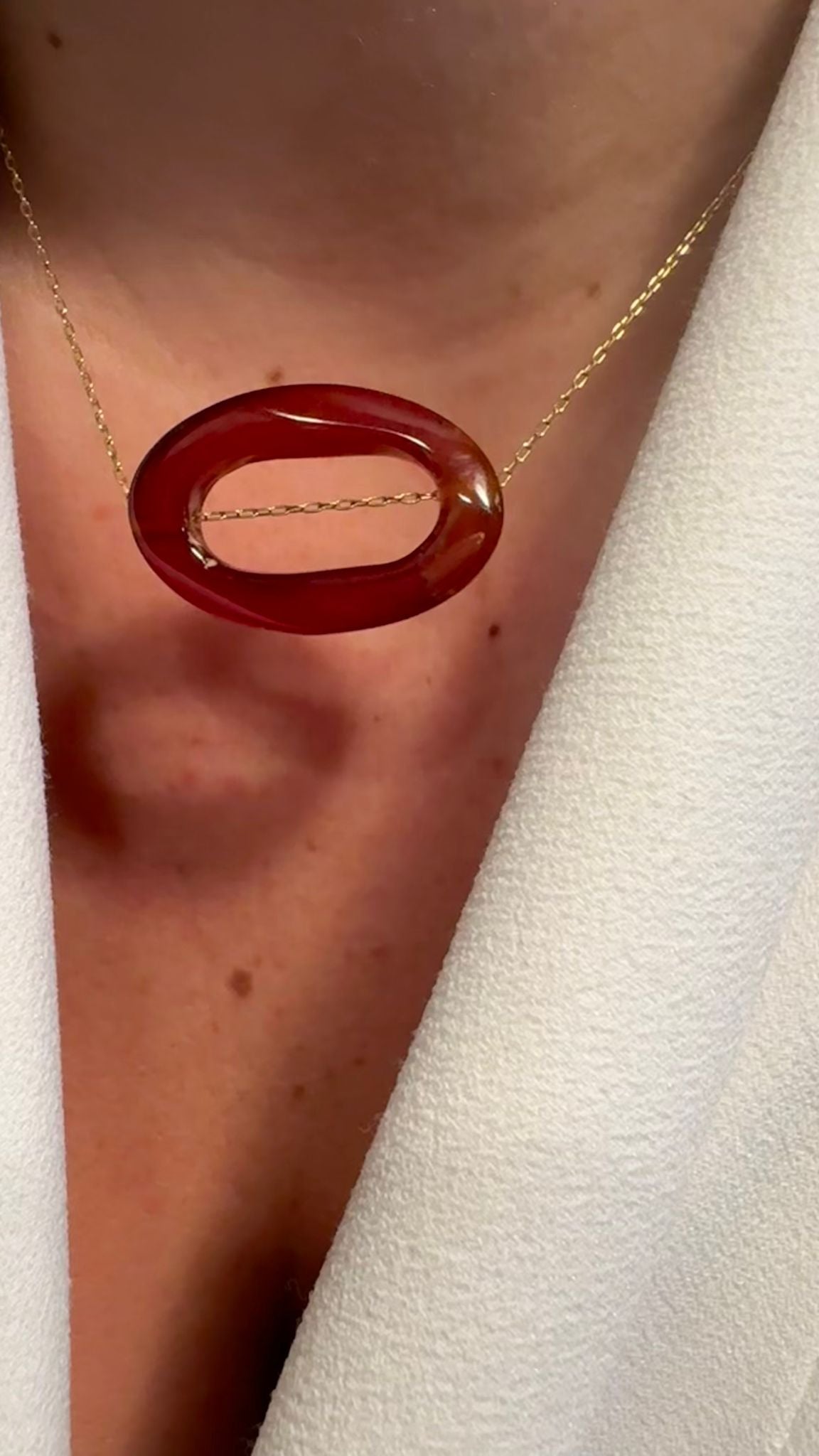 La cadena de oro de 18 k (40 cm, si quieres otro largo, dínoslo!) atraviesa la pieza como una ruta sencilla, como un recordatorio de que el camino se hace desde dentro.
