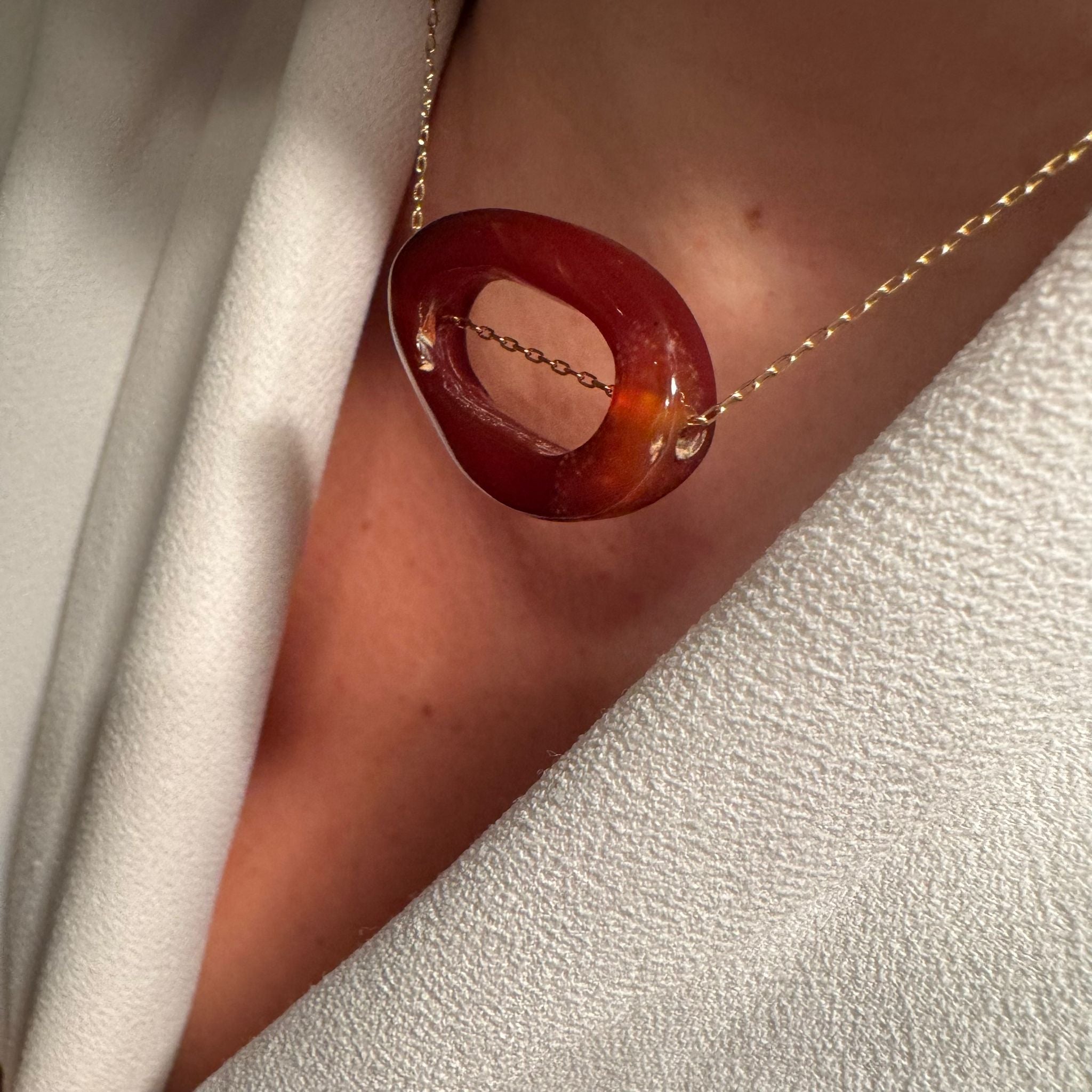 La ágata marrón, cálida y profunda, ayuda a traer la mente de vuelta al cuerpo: calma, enfoque y presencia en el instante.